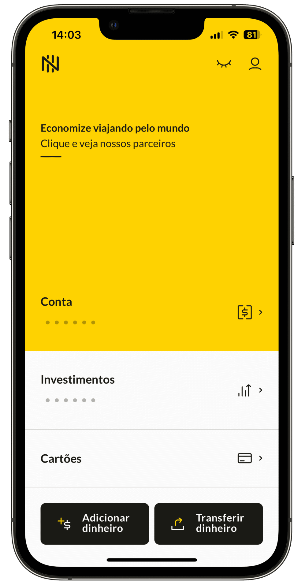 Conta internacional gratuita e sem taxas de manutenção. Tenha acesso total à sua conta pelo aplicativo e utilize diversos serviços, como: transferências, pagamentos e câmbio.